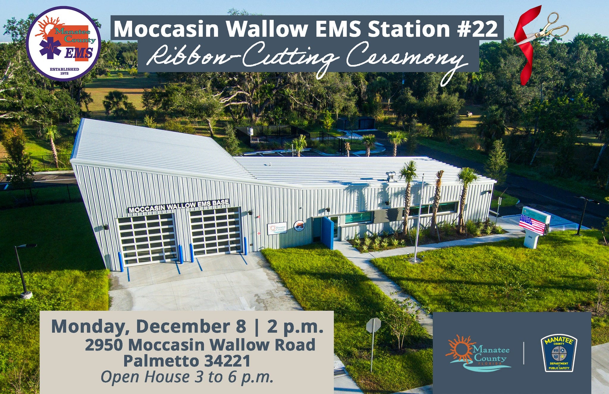 Manatee County residents are invited to celebrate the opening of the county’s newest emergency medical facility as EMS Station #22 holds a ribbon-cutting ceremony on Monday, December 8. The event begins at 2 p.m. at the new station, located at 2950 Moccasin Wallow Road, with an open house to follow from 3 to 6 p.m.