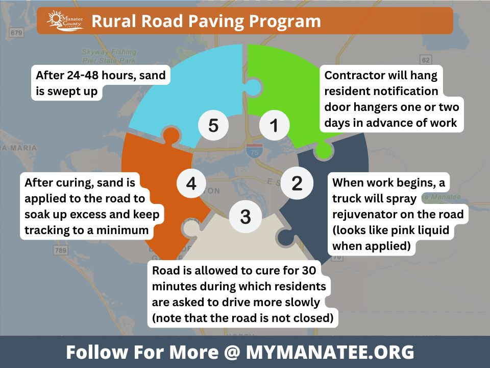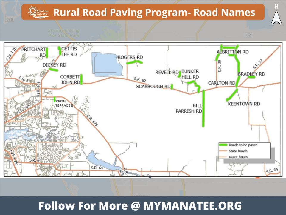 For additional information about the Rural Road Paving and Rejuvenation Program, residents can visit the county’s pavement management webpage at pavement-management-manateegis.hub.arcgis.com.