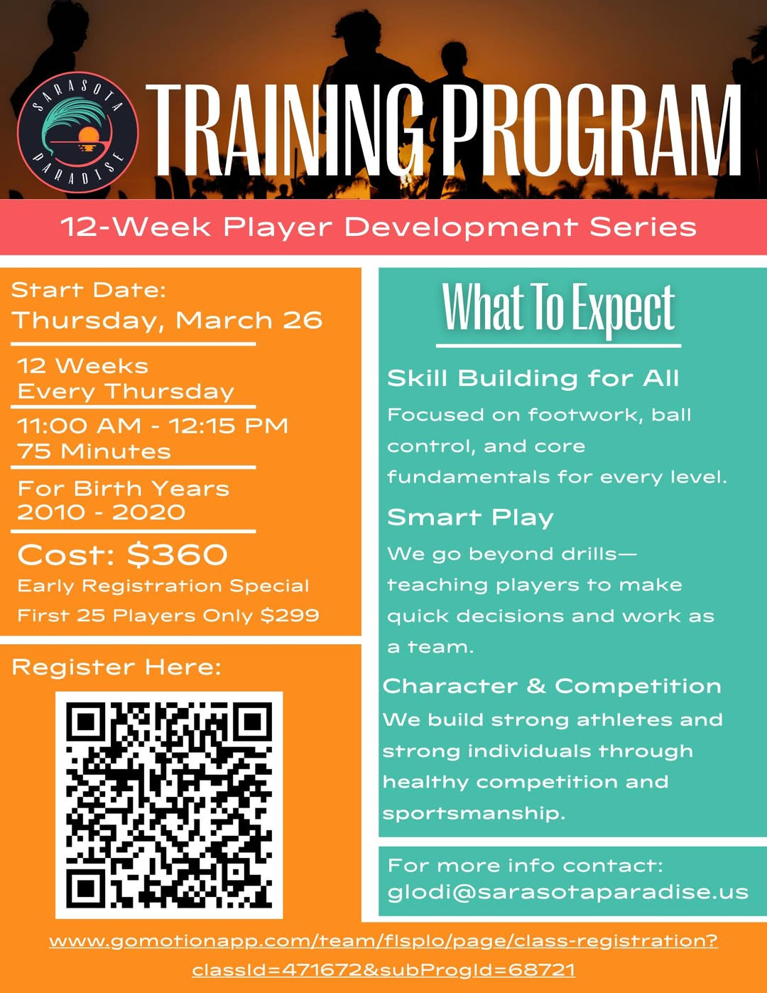 Sarasota Paradise Launches 12-Week Youth Player Development Program Starting March 26
