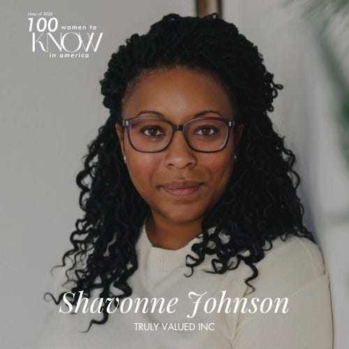 Shavonne Johnson, CEO and Founder of Truly Valued, Inc., has been named a 2026 “100 Women to KNOW in America” Honoree, a prestigious recognition celebrating women who are leaders, innovators, and change-makers in their industries and communities.