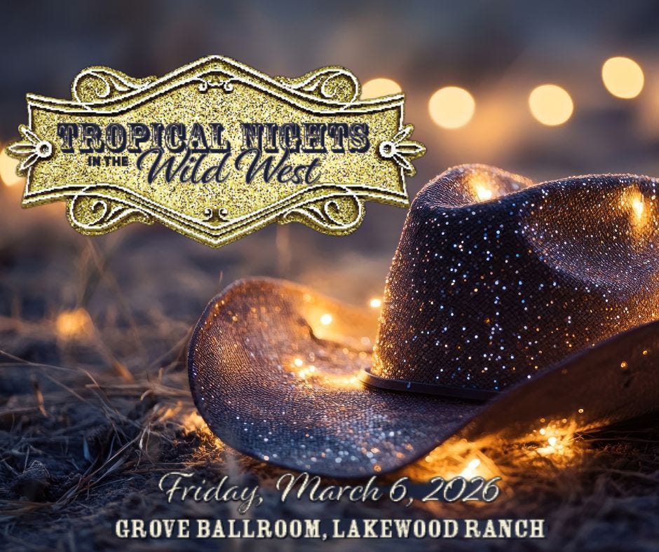 Also on Friday, March 6, Tropical Nights in the Wild West takes place at the Grove Ballroom in Lakewood Ranch, bringing a themed evening of music and festivities to eastern Manatee County.