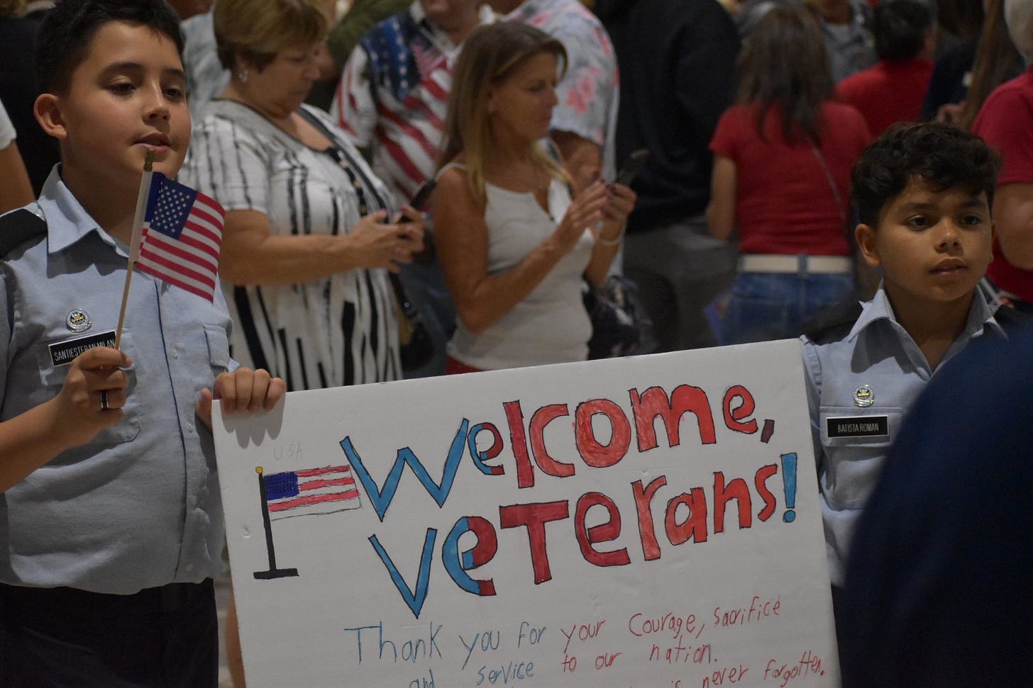 A sea of flags, cheers, and heartfelt embraces filled the Sarasota-Bradenton International Airport Tuesday night as thousands of community members, families, and local students gathered to welcome home 88 veterans from their Honor Flight.