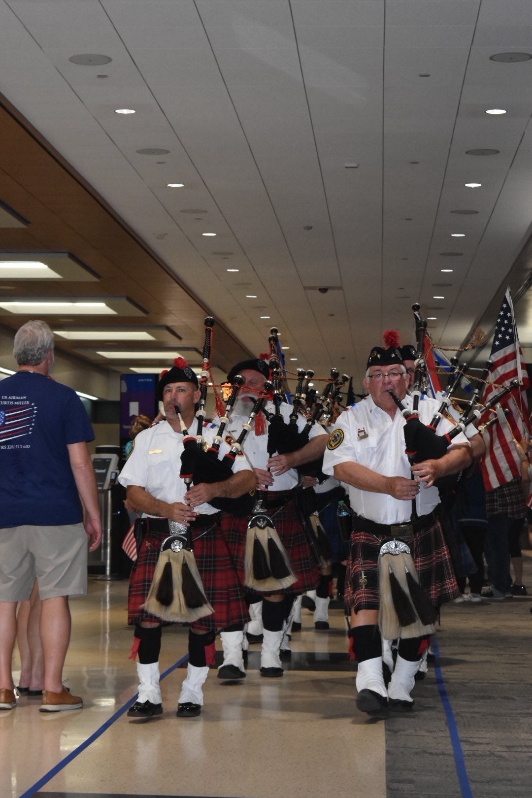 Tuesday’s return was met with standing ovations, homemade signs, and tears of gratitude as local residents lined the terminal to welcome the heroes home.