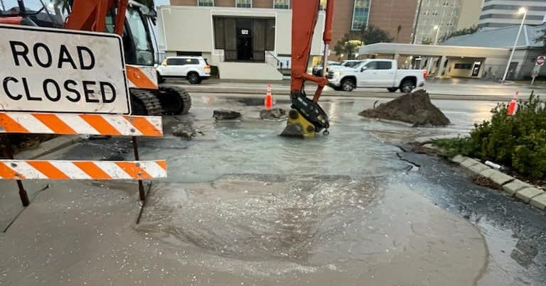 Bradenton, FL – Drivers in Bradenton should expect continued road closures on northbound 9th St W between 6th Ave W and Manatee Ave as repairs to a damaged water main are underway. The Florida Department of Transportation (FDOT) and the City of Bradenton are working together to address the issue, which has compromised the integrity of the roadway due to water seeping into the construction area.