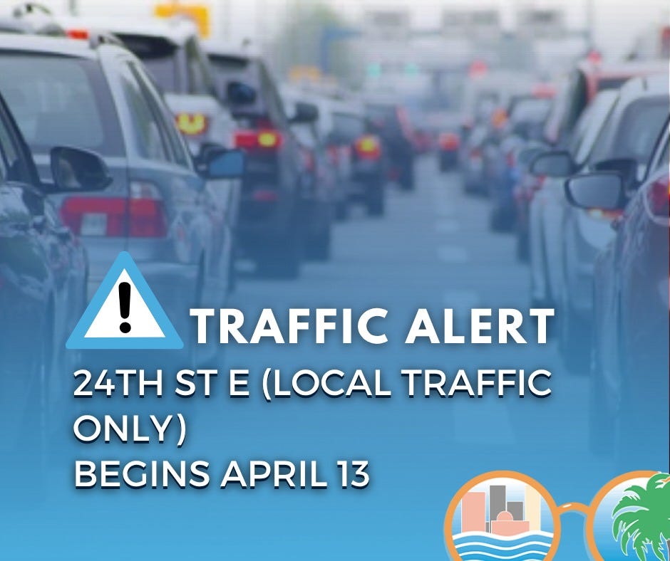 A section of 24th Street East in Bradenton will be limited to local traffic starting April 13 as crews begin utility work in the area. The restriction will impact the stretch between 3rd Avenue East and 2nd Avenue East.