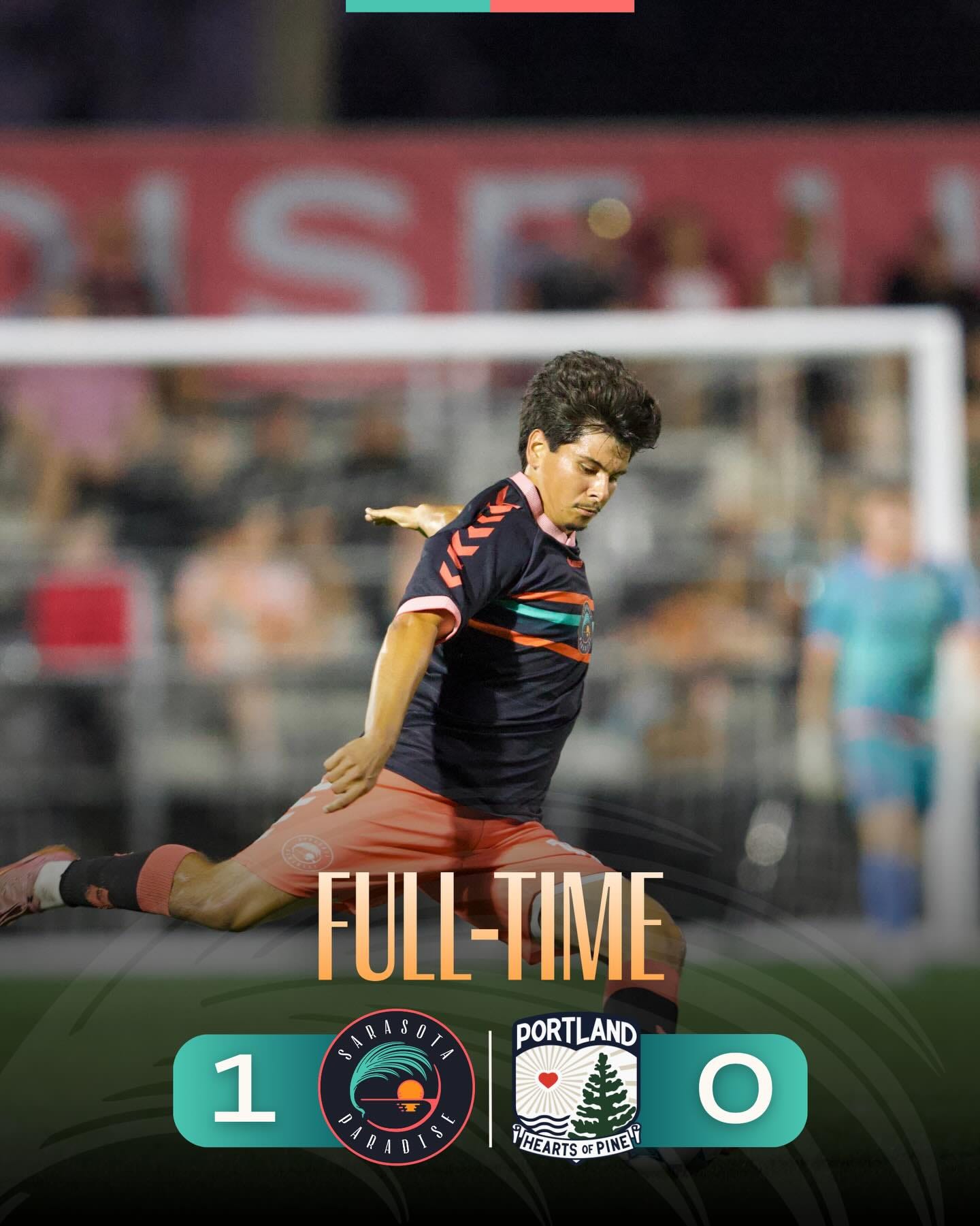 Sarasota Paradise secured a milestone moment in club history with a 1-0 victory over Portland Hearts of Pine, powered by an early goal from Aaron Walker and a standout performance in goal by Alex Sutton.
