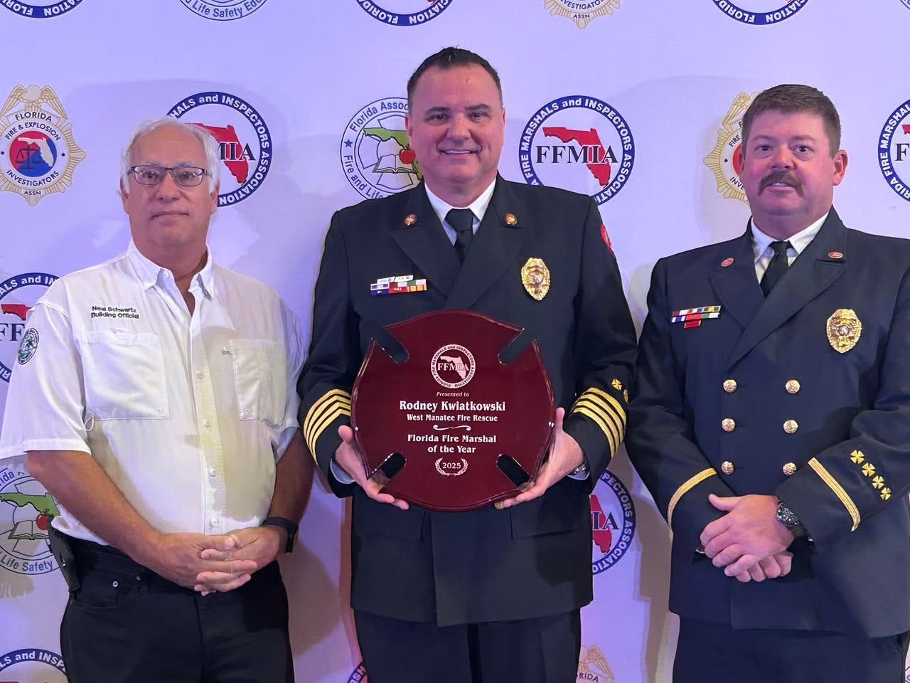 West Manatee Fire Rescue Fire Marshal Rodney Kwiatkowski has been honored as the 2025 Florida Fire Marshals and Inspectors Association (FFMIA) Fire Marshal of the Year.