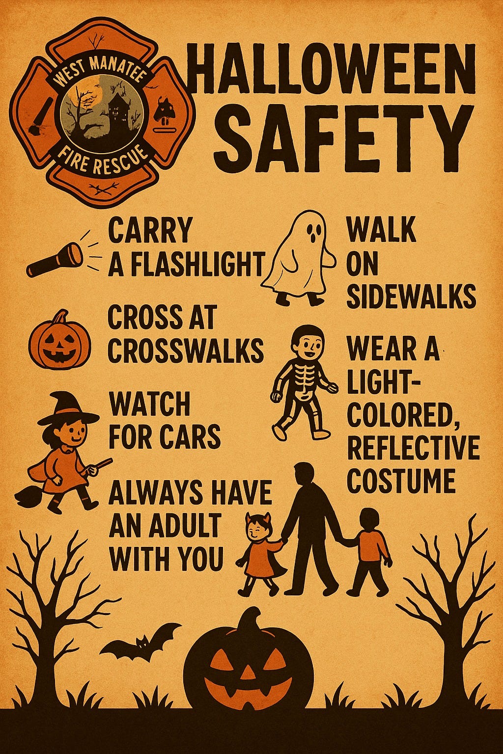 West Manatee Fire Rescue encourages everyone to plan ahead, stay alert, and make the night memorable for all the right reasons — ensuring Halloween is full of sweet treats and safe fun for the entire community.